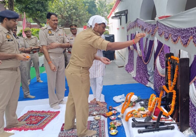 वरिष्ठ पुलिस अधीक्षक मुजफ्फरनगर द्वारा विधिपूर्वक किया गया शस्त्रों का पूजन। मुजफ्फरनगर 17 सितंबर प्राप्त समाचार के अनुसार आज देव...