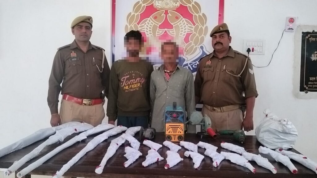 जनपद मुजफ्फरनगर में अवैश शस्त्रों का निर्माण/क्रय/विक्रय करने वाले अभियुक्तगण की गिरफ्तारी हेतु वरिष्ठ पुलिस अधीक्षक श्री अभिषेक सिंह के निर्देशन में चलाये जा रहे अभियान के अन्तर्गत पुलिस अधीक्षक ग्रामीण श्री आदित्य बंसल के निकट पर्यवेक्षण में क्षेत्राधिकारी भोपा डॉ0 रविशंकर, प्रभारी निरीक्षक भोपा श्री नोवेन्द्र सिंह सिरोही तथा एसओजी प्रभारी श्री सुभाष अत्री के कुशल नेतृत्व में दिनांक आज दिनांक 13.11.2024 को थाना भोपा तथा एसओजी की संयुक्त टीम द्वारा अवैध शस्त्र निर्माण करने की फैक्ट्री जब्त करते हुए 02 शातिर अभियुक्तगण को ग्राम नंगला बुजुर्ग के जंगल में नहर बाई के खंडहर से गिरफ्तार किया गया । गिरफ्तार अभियुक्तगण के कब्जे से भारी मात्रा में बने-अधबने अवैध शस्त्र व शस्त्र निर्माण करने के उपकरण बरामद किये गये। अभियुक्तगण की गिरफ्तारी व बरामदगी के सम्बन्ध में थाना भोपा पुलिस द्वारा अग्रिम विधिक कार्यवाही की जा रही है।