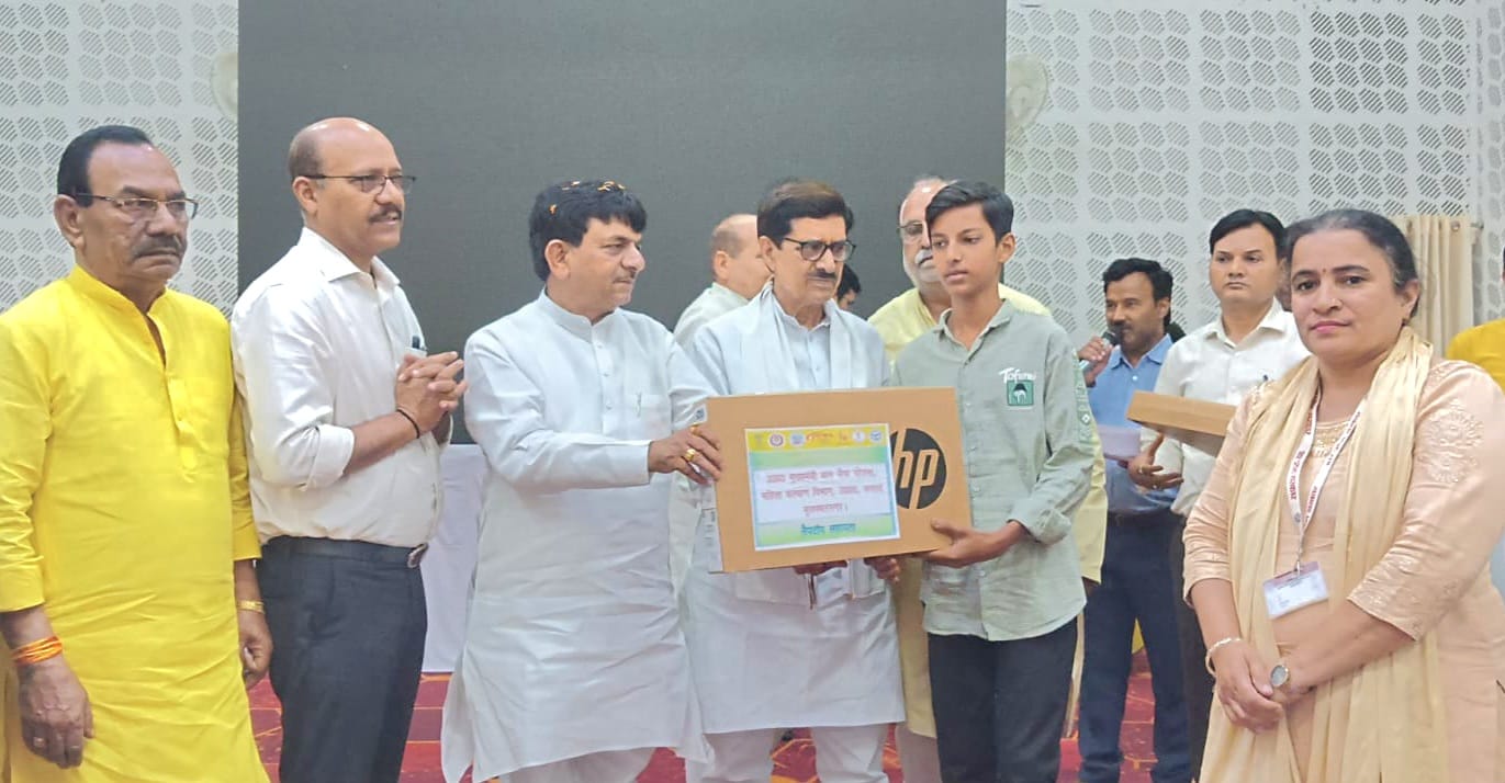 समापन समारोह के अवसर पर योजनाओं के लाभार्थीयो को लैपटॉप टूलकिट एवं पॉपकॉर्न मेकिंग मशीन का किया गया वितरण