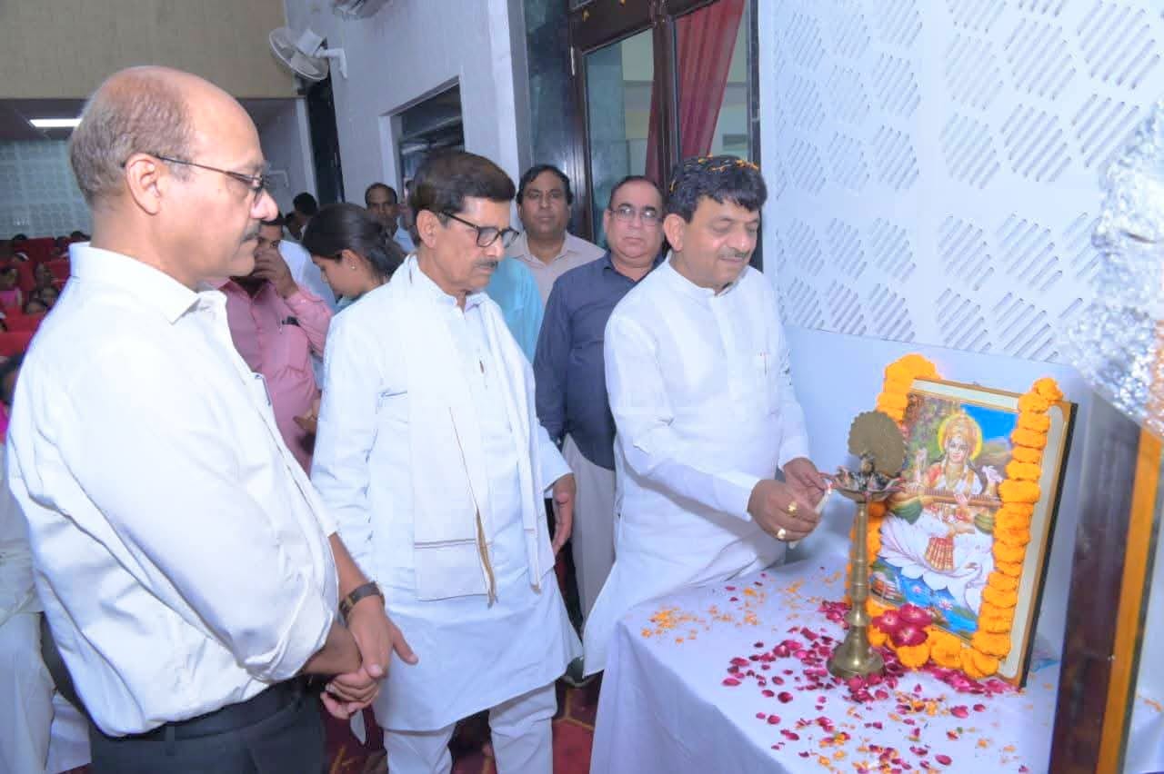 कार्यक्रम के मुख्य अतिथि माननीय राज्य मंत्री स्वतंत्र प्रभार व्यावसायिक शिक्षा कौशल विकास एवं उधमशीलता विभाग उत्तर प्रदेश सरकार श्री कपिल देव अग्रवाल , माननीय जिला पंचायत अध्यक्ष डॉo वीरपाल निर्वाल एवं जिलाधिकारी श्री उमेश मिश्रा,ने दीप प्रज्वलित कर कार्यक्रम का किया शुभारंभ।